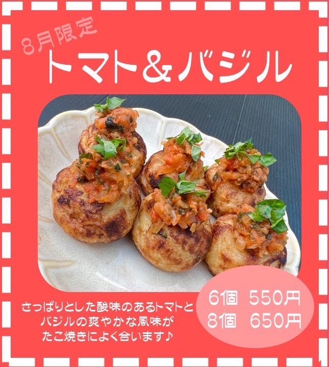 8月限定のトマト&バジルのたこ焼きは今日までとなります。