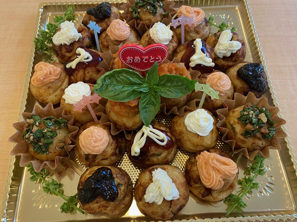 本日、お誕生日のお祝いでたこ焼きケーキのご注文をいただきました。